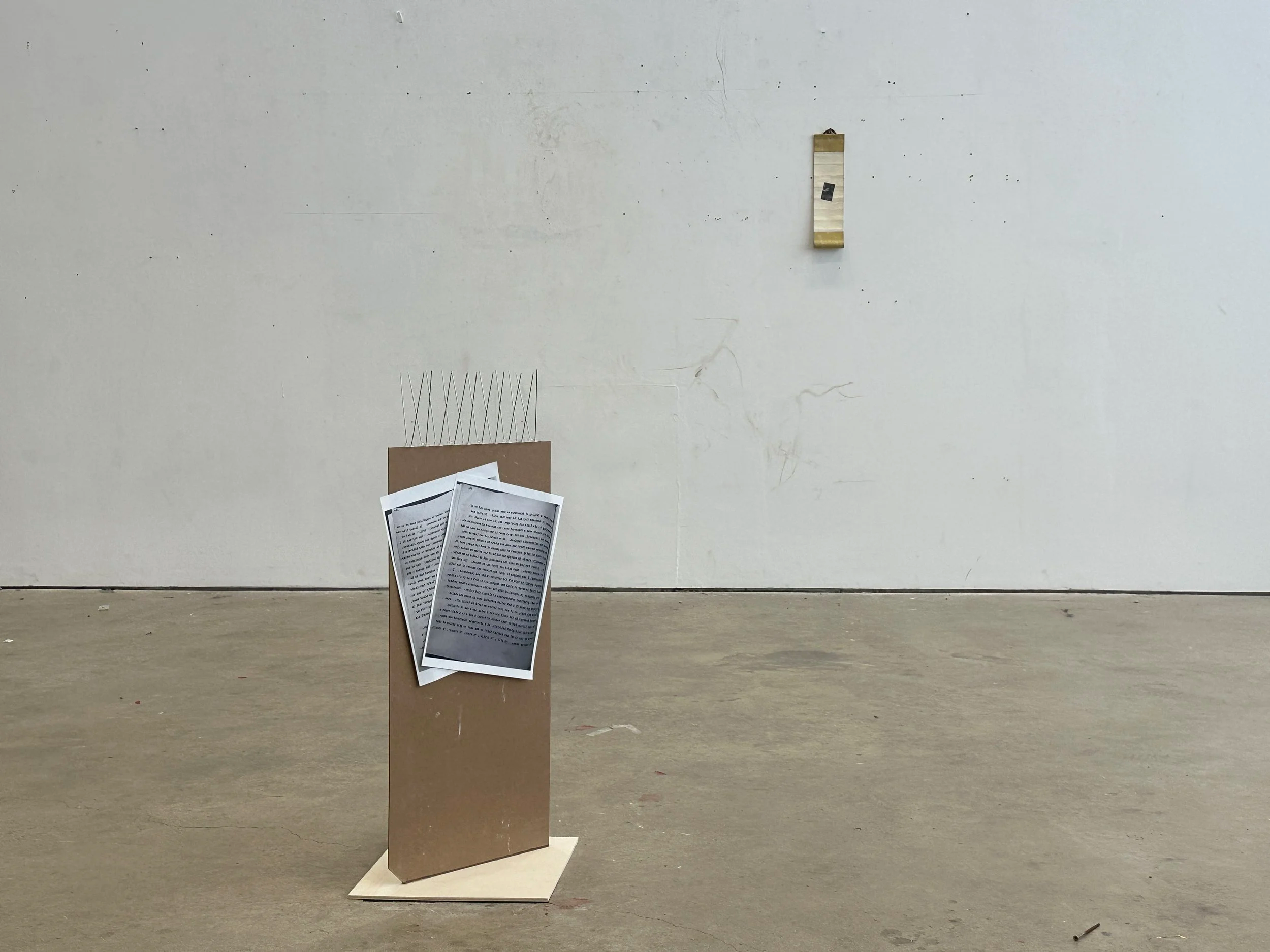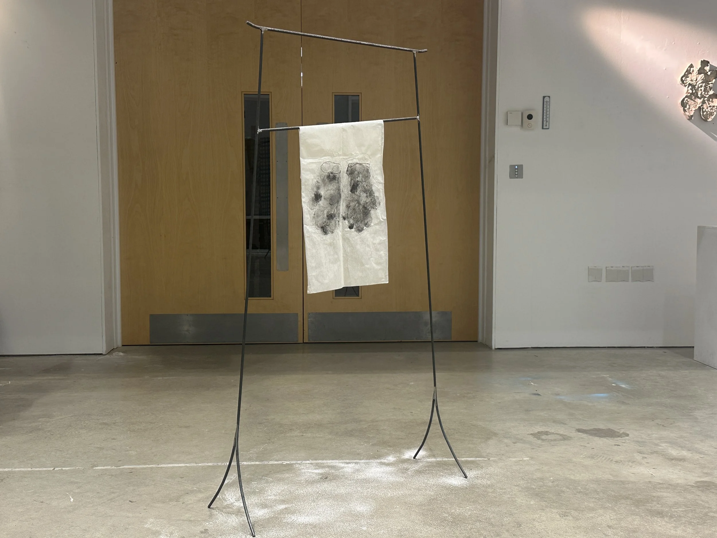 Steel, rice paper, ink, chalk powder